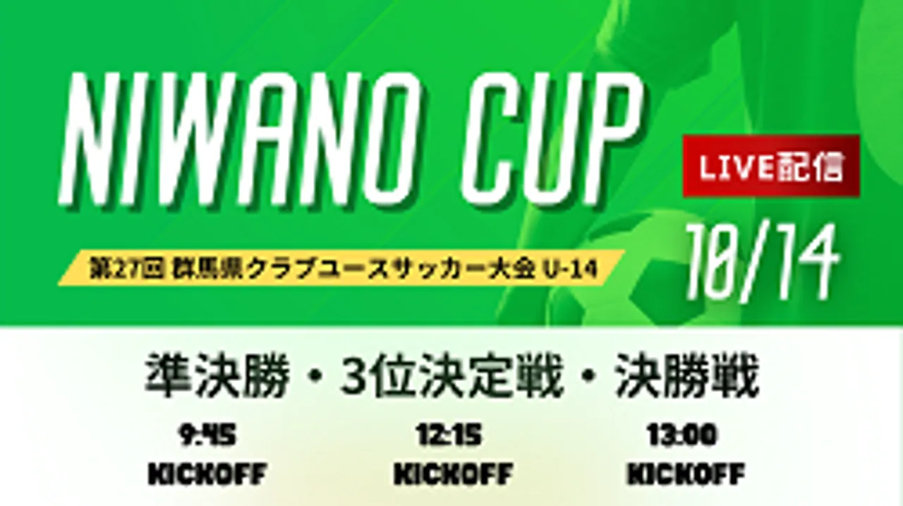 【LIVE配信】準決勝~決勝 ライブ配信のお知らせ NIWANO CUP 第27回群馬県クラブユースサッカー大会 U-14